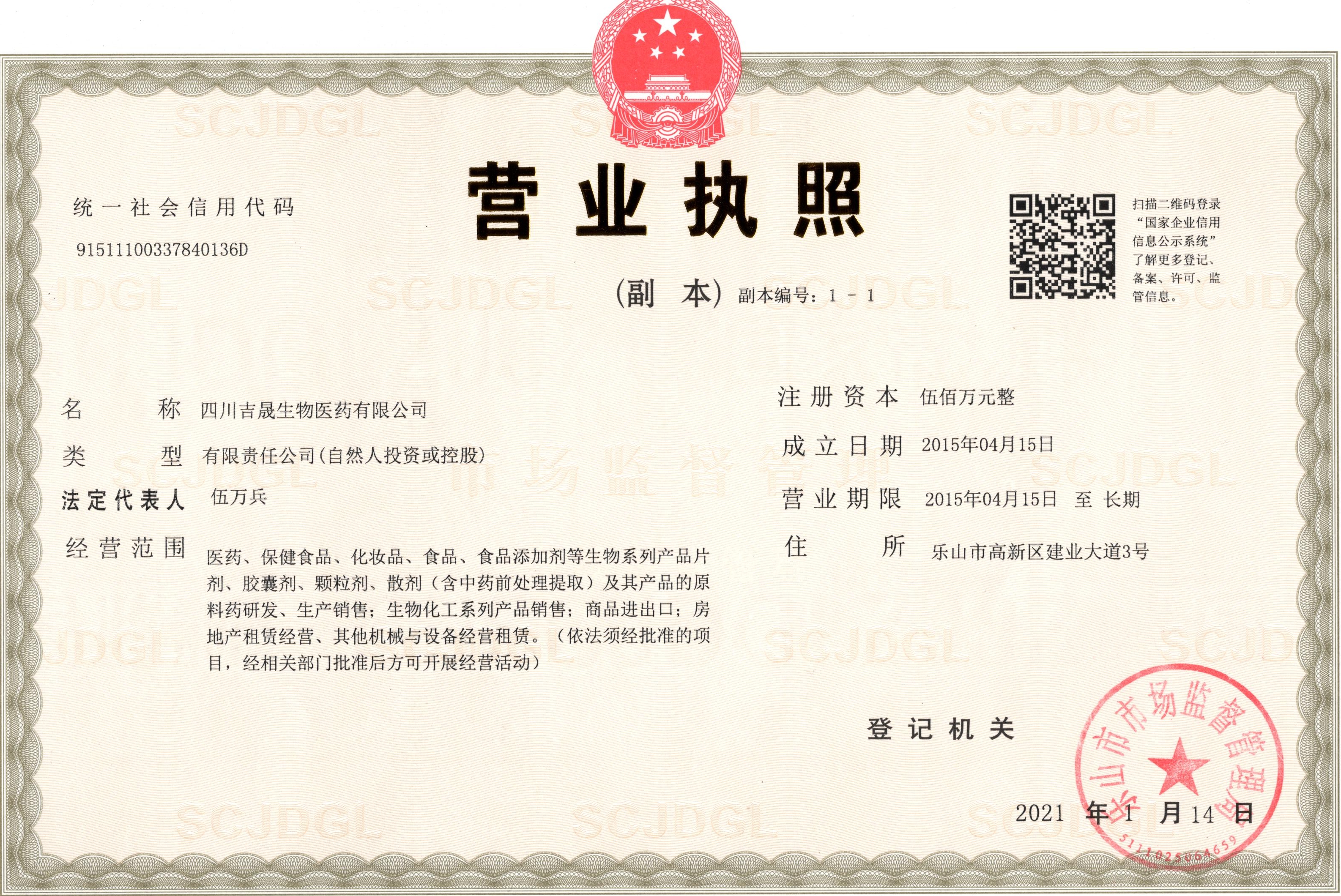四川吉晟生物醫(yī)藥有限公司成立于2015年,位于四川樂山高新技術開發(fā)區(qū),工廠占地面積6萬多平方米,是一家集產品研發(fā)、生產、銷售為一體的國家高新技術企業(yè),通過了ISO9001、Kosher質量認證,2022年榮獲樂山市首家“瞪羚企業(yè)”。